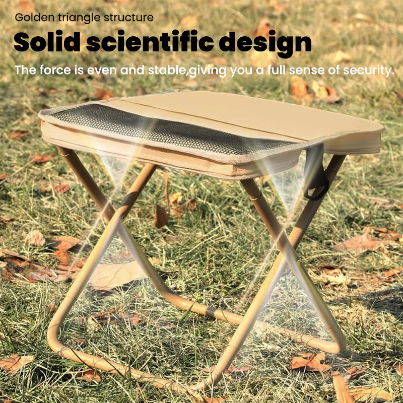 • Carbon steel bracket: Crafted with a carbon steel bracket, this stool features a cross-support structure that effectively stabilizes the center of gravity within the support area. This design ensures stronger load-bearing performance and enhanced safety. Its compact, foldable design allows you to carry it like a handbag—perfect for travel, camping, or daily commuting.