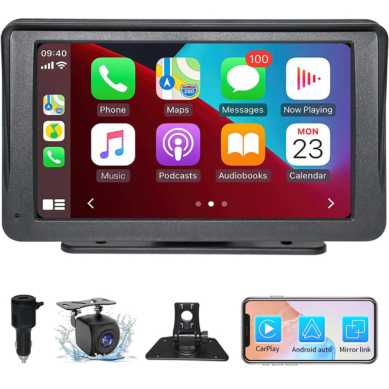 - Stable Wireless Apple CarPlay & Android Auto Compatibility: Effortlessly connect your smartphone to the Saker Portable Car play Screen, which supports both Apple CarPlay and Android Auto. The moment you enter your vehicle, your phone connects automatically, integrating your preferred apps and features into your driving experience. This versatile screen is compatible with most cars.