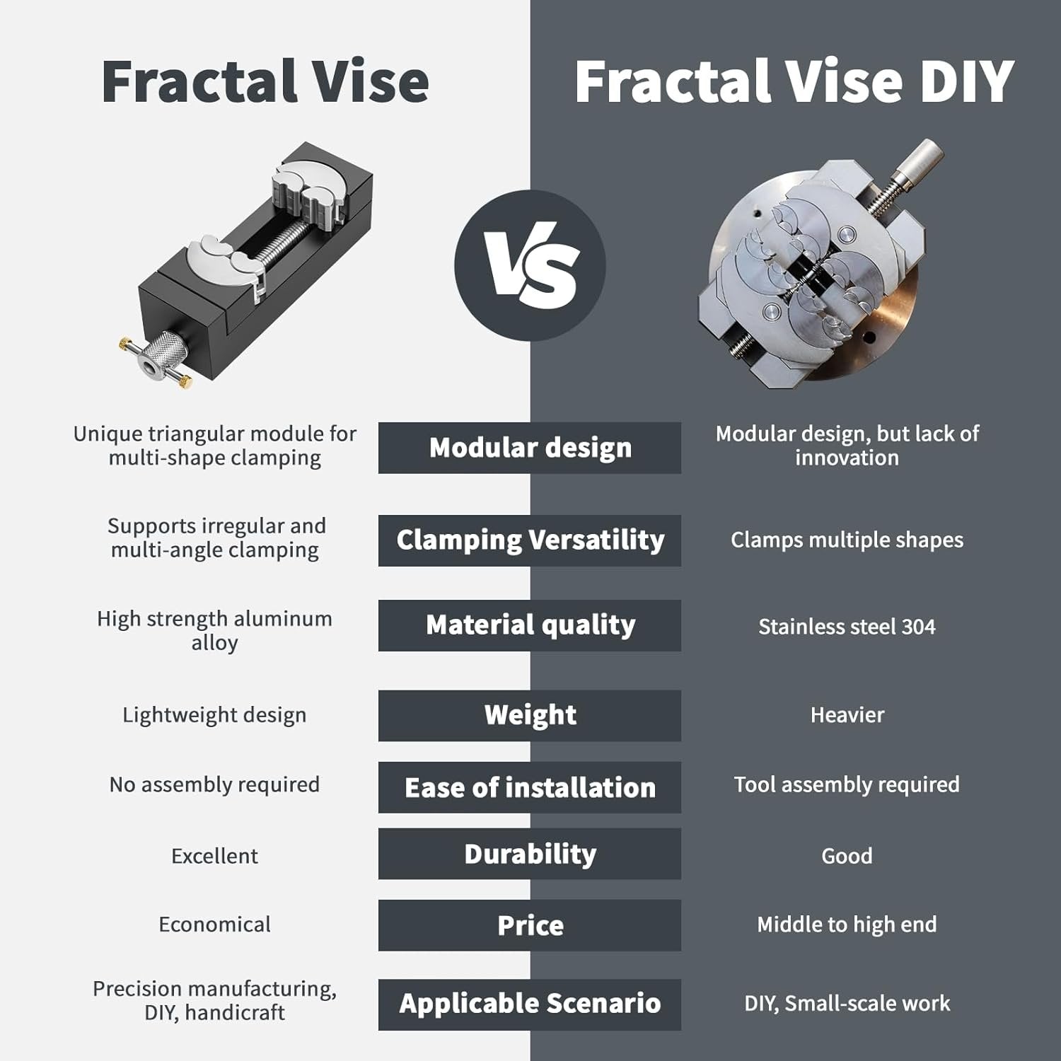 This innovative vise features two jaws in one: a classic flat jaw for securely holding standard, regular-shaped objects, and a fractal jaw that automatically adapts to irregular, round, or uneven shapes—without manual adjustment. It provides uniform, secure clamping while protecting delicate surfaces. No more switching tools or struggling with odd parts—get precision clamping for any shape in one compact device. Perfect for DIY, electronics, crafts, and repair work. One tool, endless possibilities.