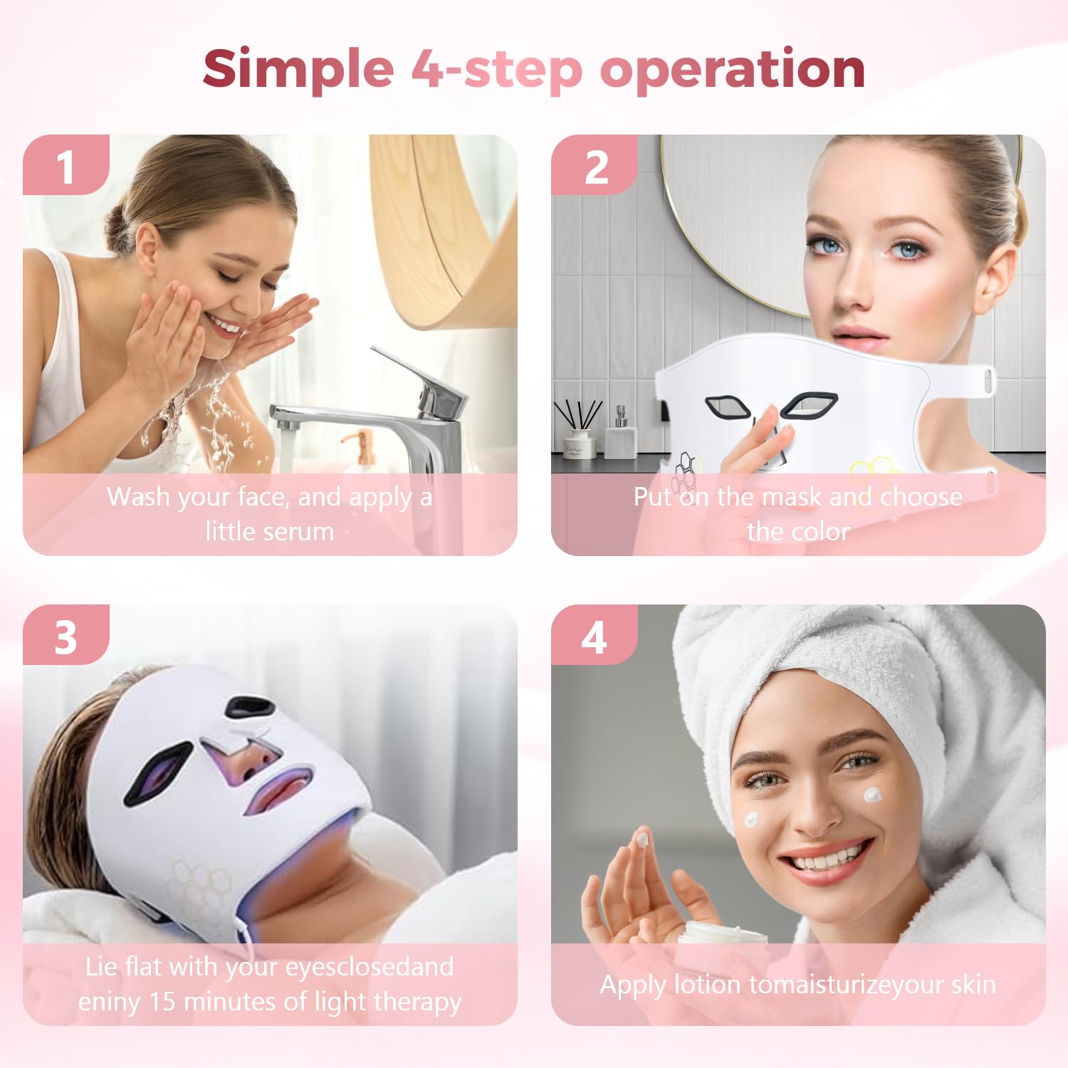 • 4 modes for skincare: The red light mode stimulates collagen production and reduces wrinkles. The blue light mode works on the skin surface to brighten the complexion. The purple light mode targets acne and effectively helps repair acne scars. The red + infrared light mode breaks down pigmentation and improves skin laxity.