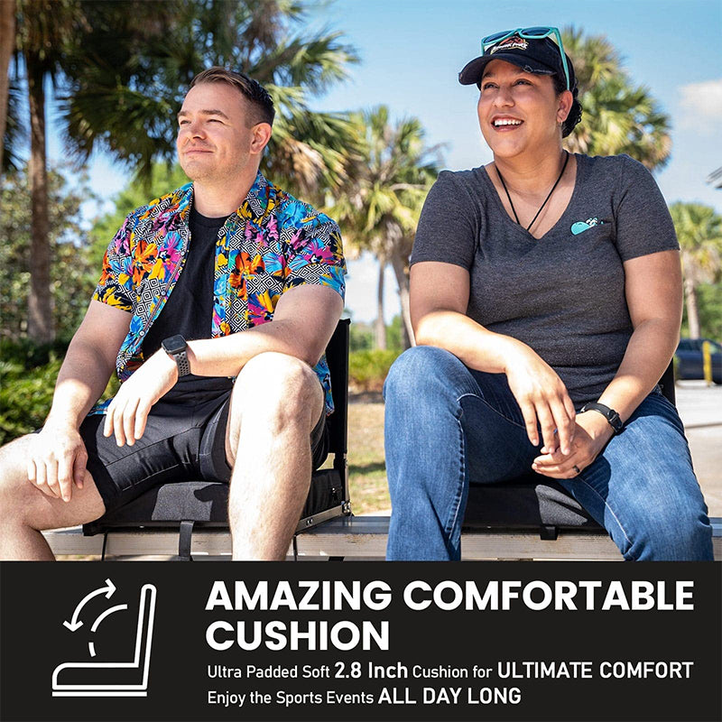 - Comfortable Thick Cushion & Back Support: Saker bleacher chairs with upgrade thick padded cushion & back provide you with comfortable support. Just lean on the stadium seats and enjoy your leisure time.