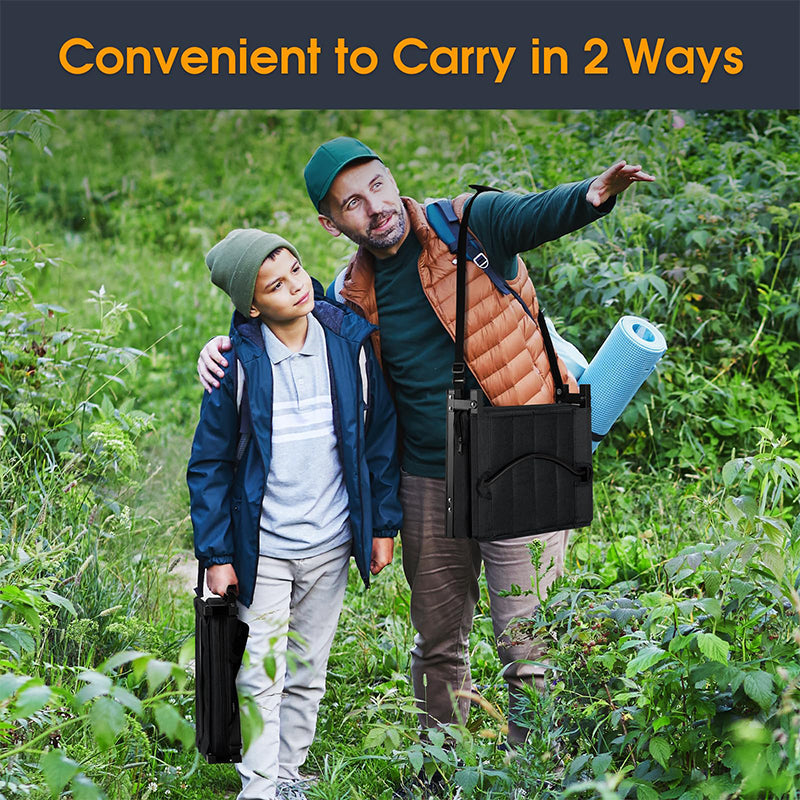 - Foldable & Portable: The portable stadium seats chair folds up easily and comes with a detachable shoulder strap for easy transport. When folded it is easy to carry on the shoulder strap or hold the built-in handle to move it.