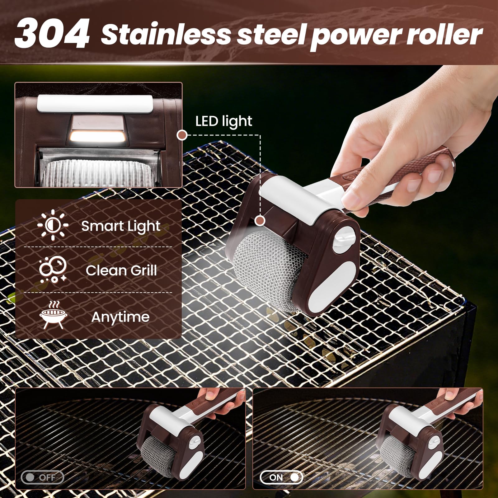 Cordless power at 350 RPM: Spin away burnt-on residue fast. The 304 stainless roller spins at 350 RPM to clean your grill with zero elbow grease. Just preheat the grill and let it roll