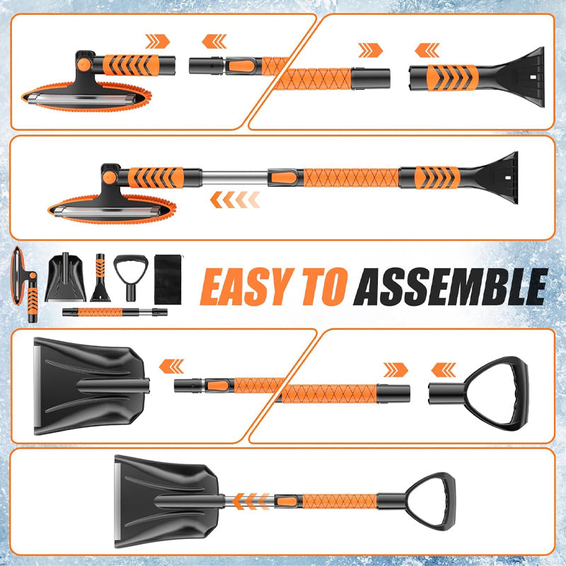 • Easy to assemble and disassemble: The snow brush and ice scraper detach into three parts, taking up minimal space and storing easily in your car or trunk.