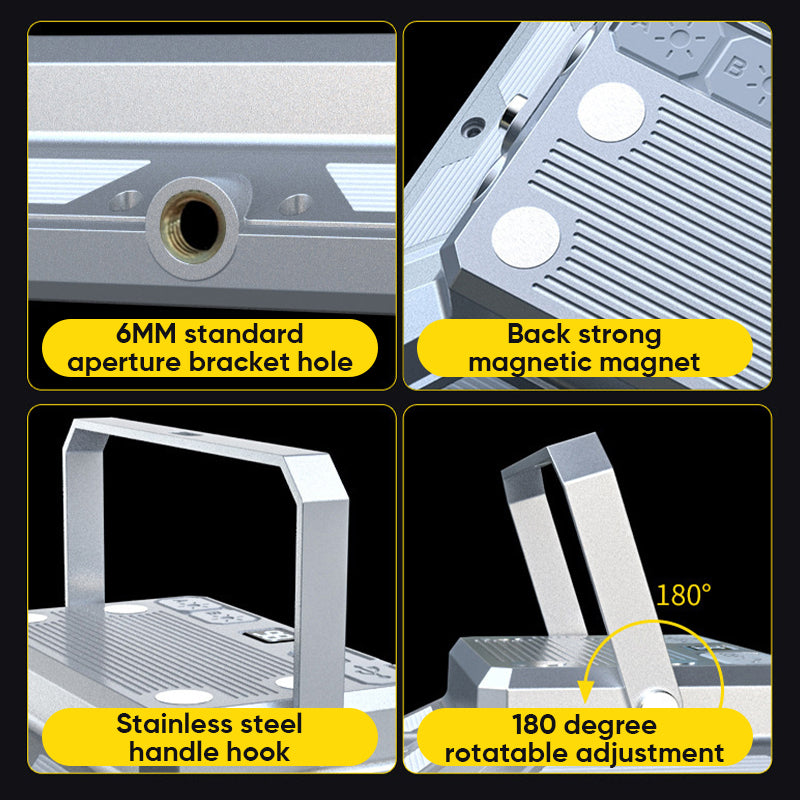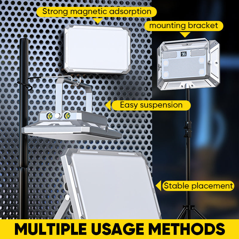 Multiple usage methods: The Rechargeable LED Lantern for Camping offers multiple usage methods to enhance your outdoor experience. Featuring strong magnetic adsorption, it can be easily attached to metal surfaces for hands-free lighting. The included mounting bracket allows for convenient suspension, so you can hang the lantern from a tree, tent, or shelter. Additionally, the stable placement design ensures the lantern stays securely in place when set down.