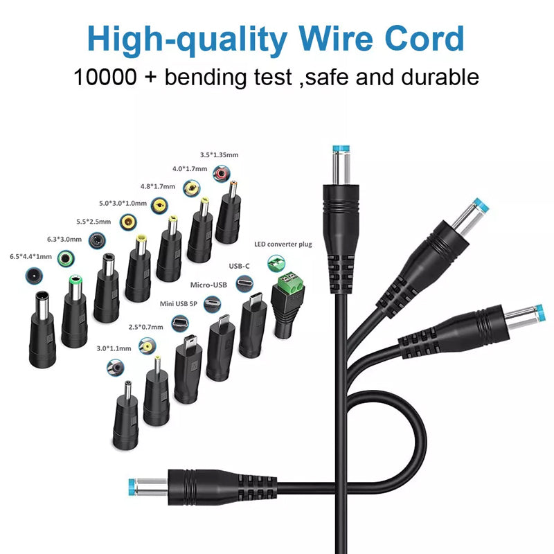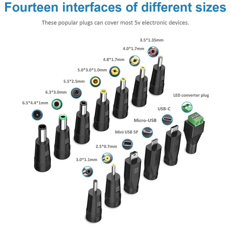 • Versatile Compatibility: 14 interchangeable DC plugs connectors Tips, which makes it fits most of home appliances. You do not have to worry about finding the suitable adapters when using various devices.