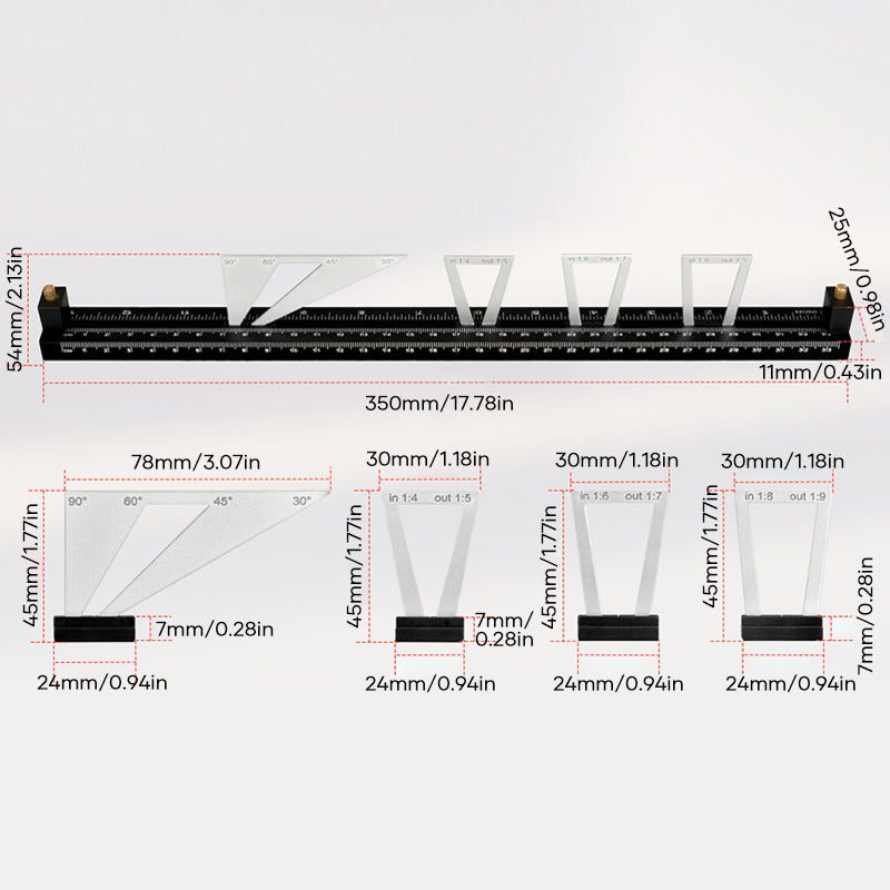 1* Saker Adjustable Dovetail Marking Ruler Set