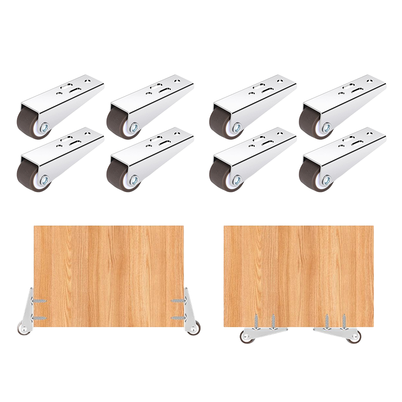 • Low profile design: Mini caster wheels can be well concealed at the bottom of furniture: The furniture will be raised by only 1.0in after installation, maximizing the space savings.