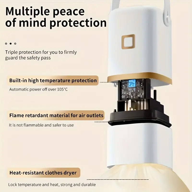 Efficient and energy-saving heating: Equipped with PTC heat dissipation technology, the warm air circulates 360° from the hem, cuffs to the collar, ensuring quick drying. With 200W power, it produces 70°C hot air, consuming only 1kWh of electricity in 5 hours, making it energy-efficient.