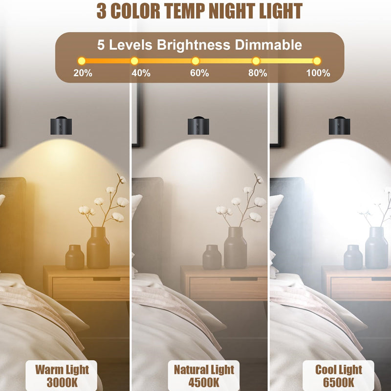 Easy to Install and Remove---> LED wall mounted light, no need electrical wires, easy to install: stick on the wall, or screw on the wall; A strong magnet make bedside lamp can be detached from. Also be a portable and cordless night light, handheld flashlight, DIY Lighting