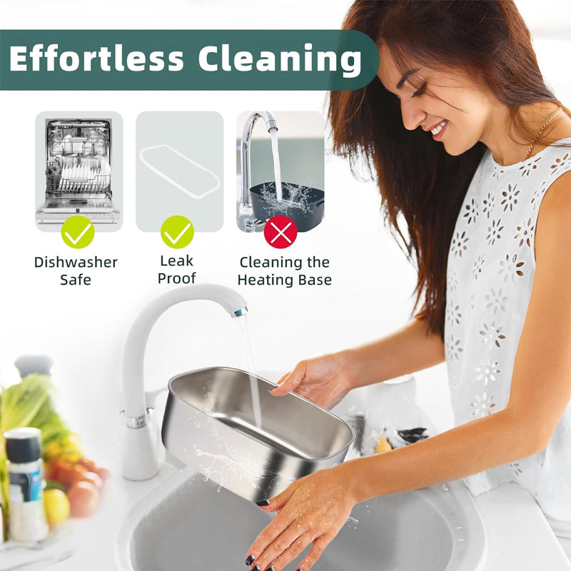 • Leakproof & dishwasher-safe: Electric lunch box features a sealing gasket to prevent leaks and spills. Additionally, the stainless steel containers and PP fruit box are dishwasher-safe for added convenience. With these features, cleaning becomes effortless, making it the optimal choice for busy lifestyles.