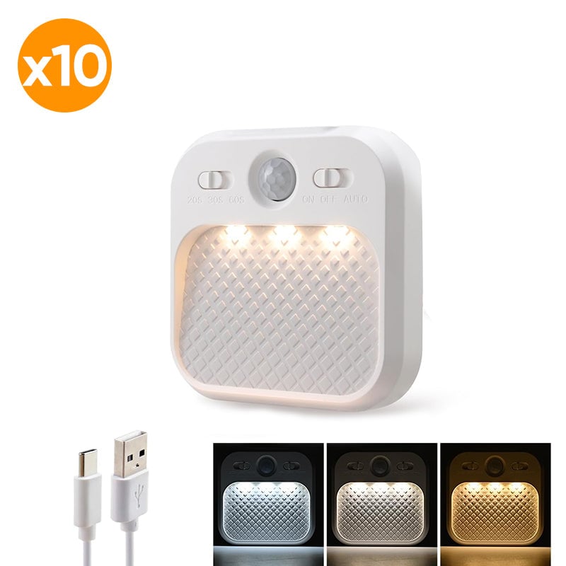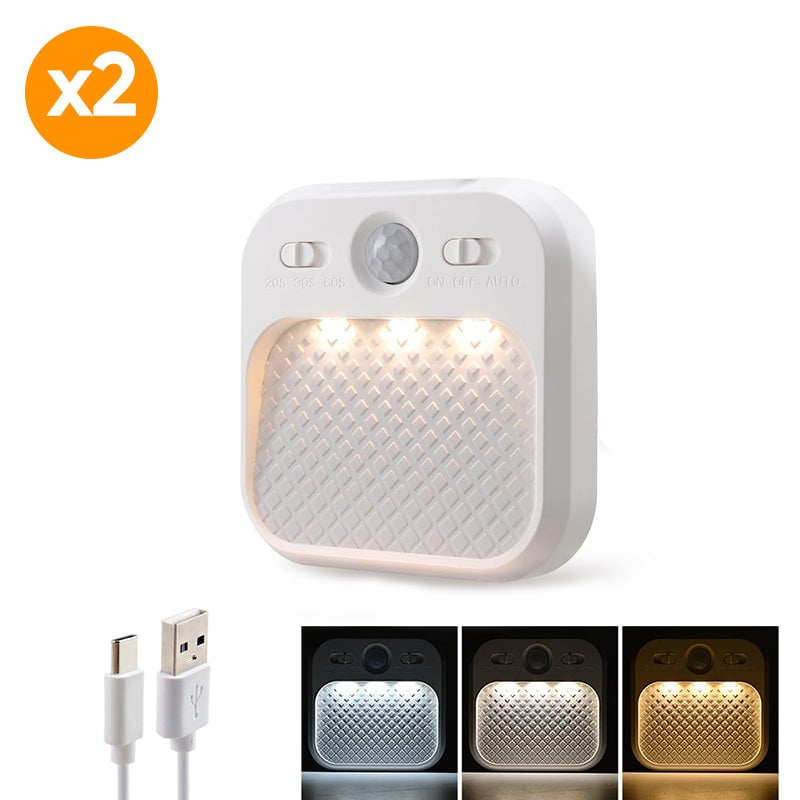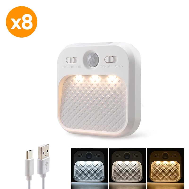 • Convenient charging: This hallway motion sensor light includes rechargeable batteries and supports charging with a power adapter or portable charger (not included). The night light glows red while charging and turns green when fully charged, and the package comes with a USB charging cable.