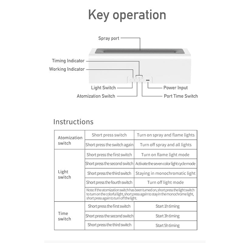 • 3-Level Timed Shutdown: The diffuser offers a 3-level timer for automatic shutdown during operation, ensuring safety and reliability.