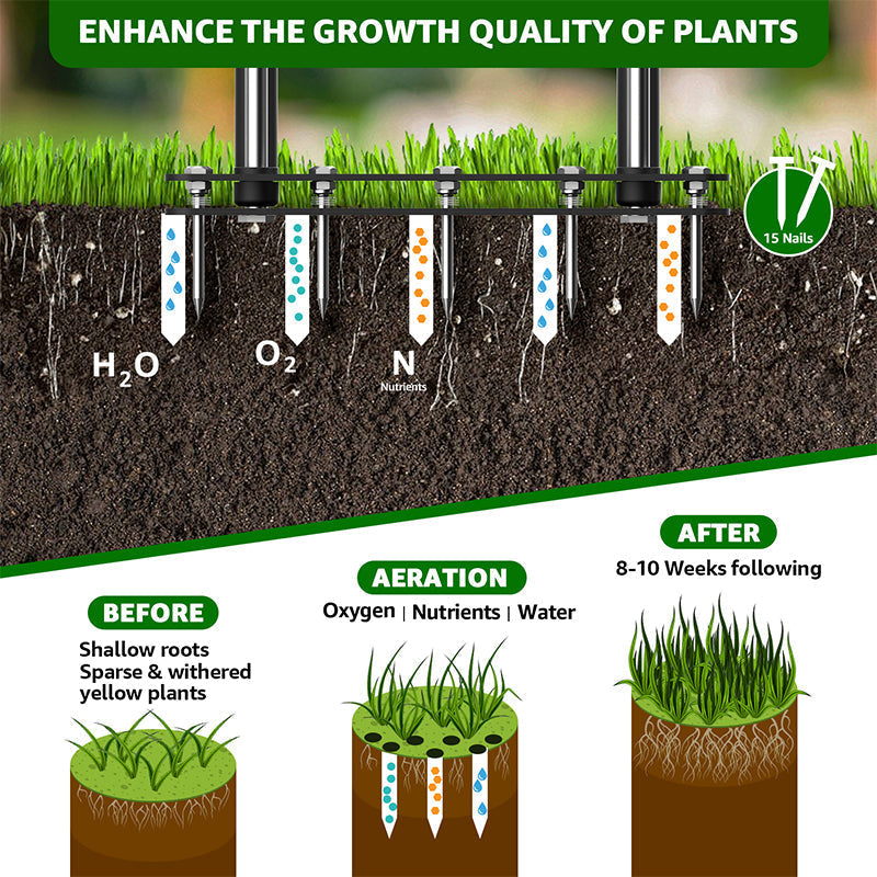 • Spare Spikes to Extend Aeration Life:This lawn air aerator comes with spare spikes to extend it's service life. Thus provide more value for you.