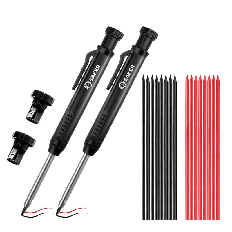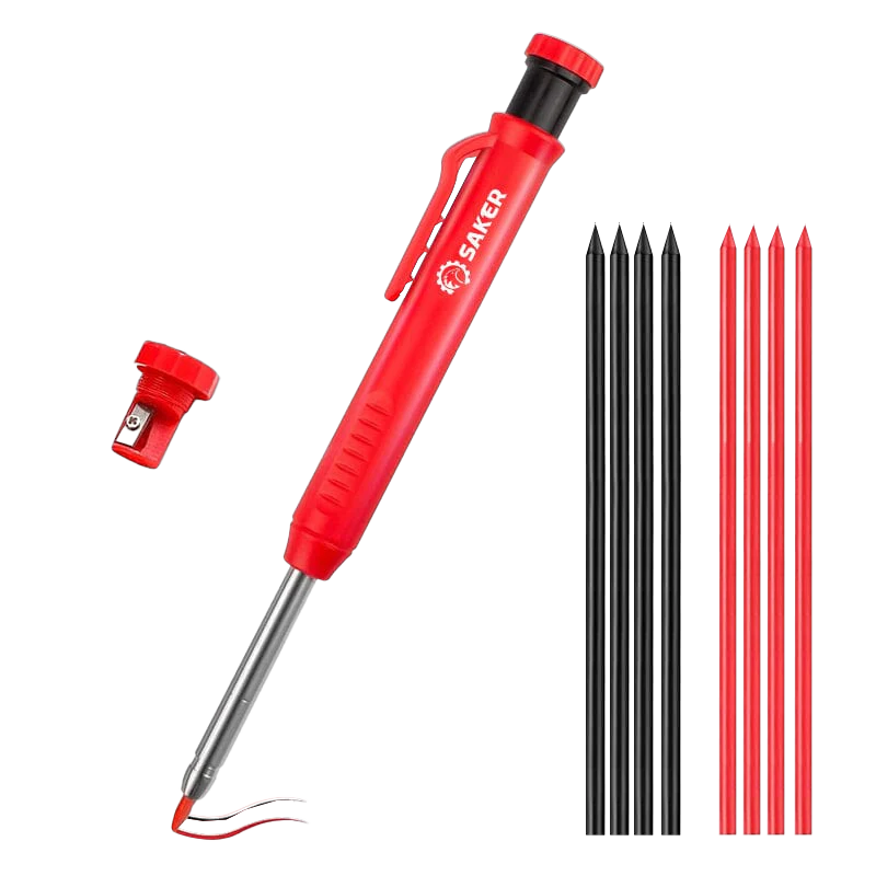 The Saker Deep Hole Pencil is designed for precision and efficiency. Its 100 mm needle-nose tip reaches tight areas with ease. The built-in sharpener ensures precise marks, while the mechanical design provides a secure grip. Ideal for construction and DIY, it marks on metal, plastic, glass, wood, and paper.