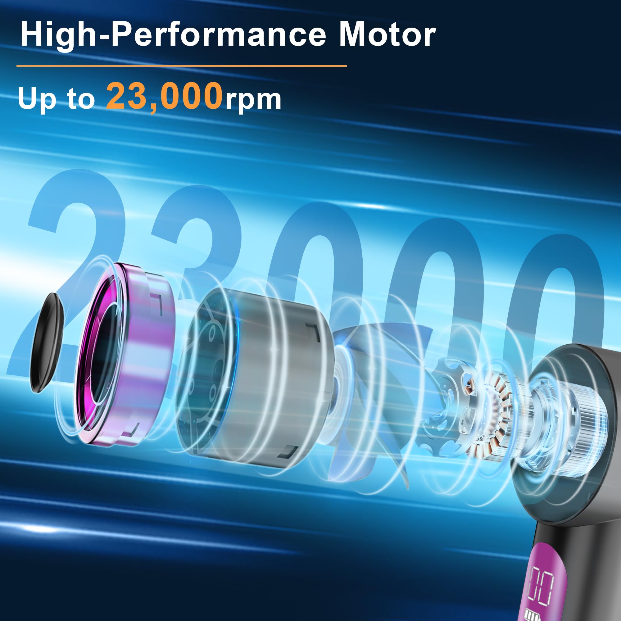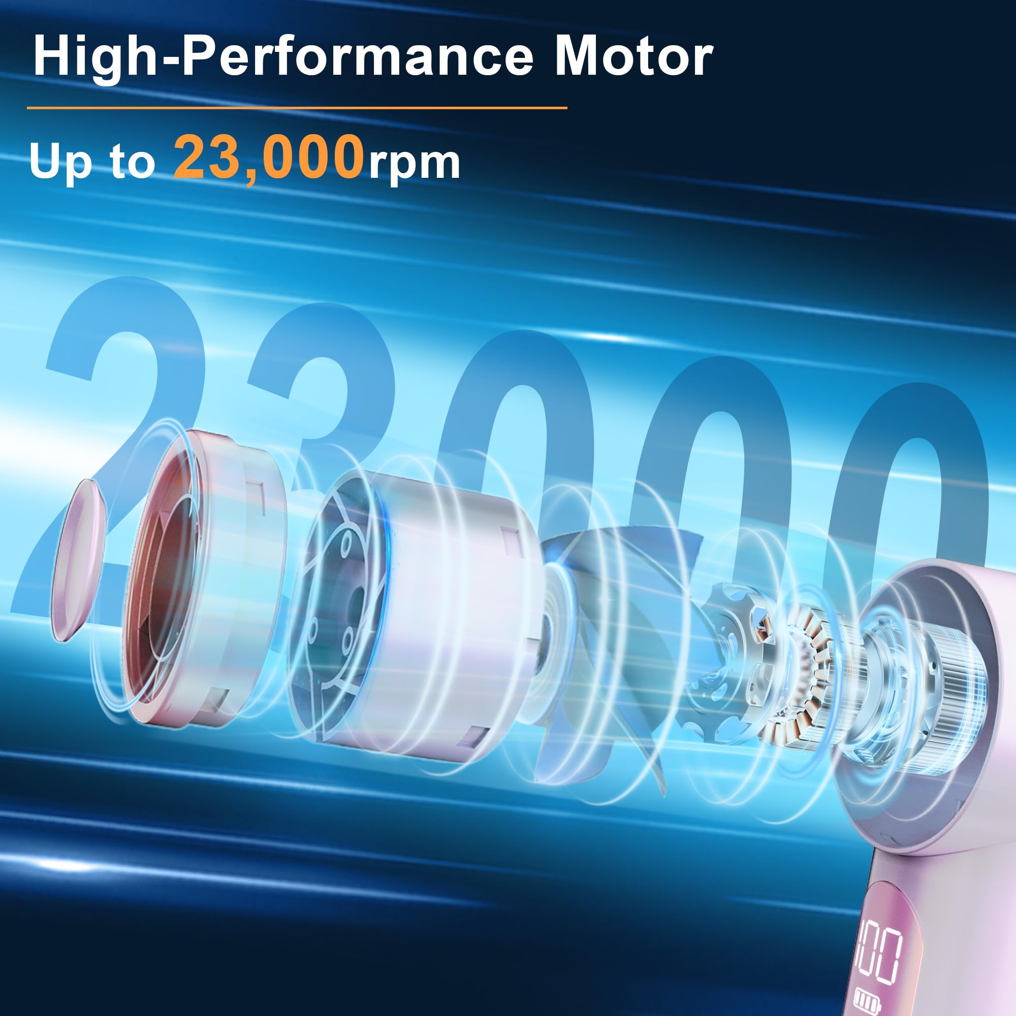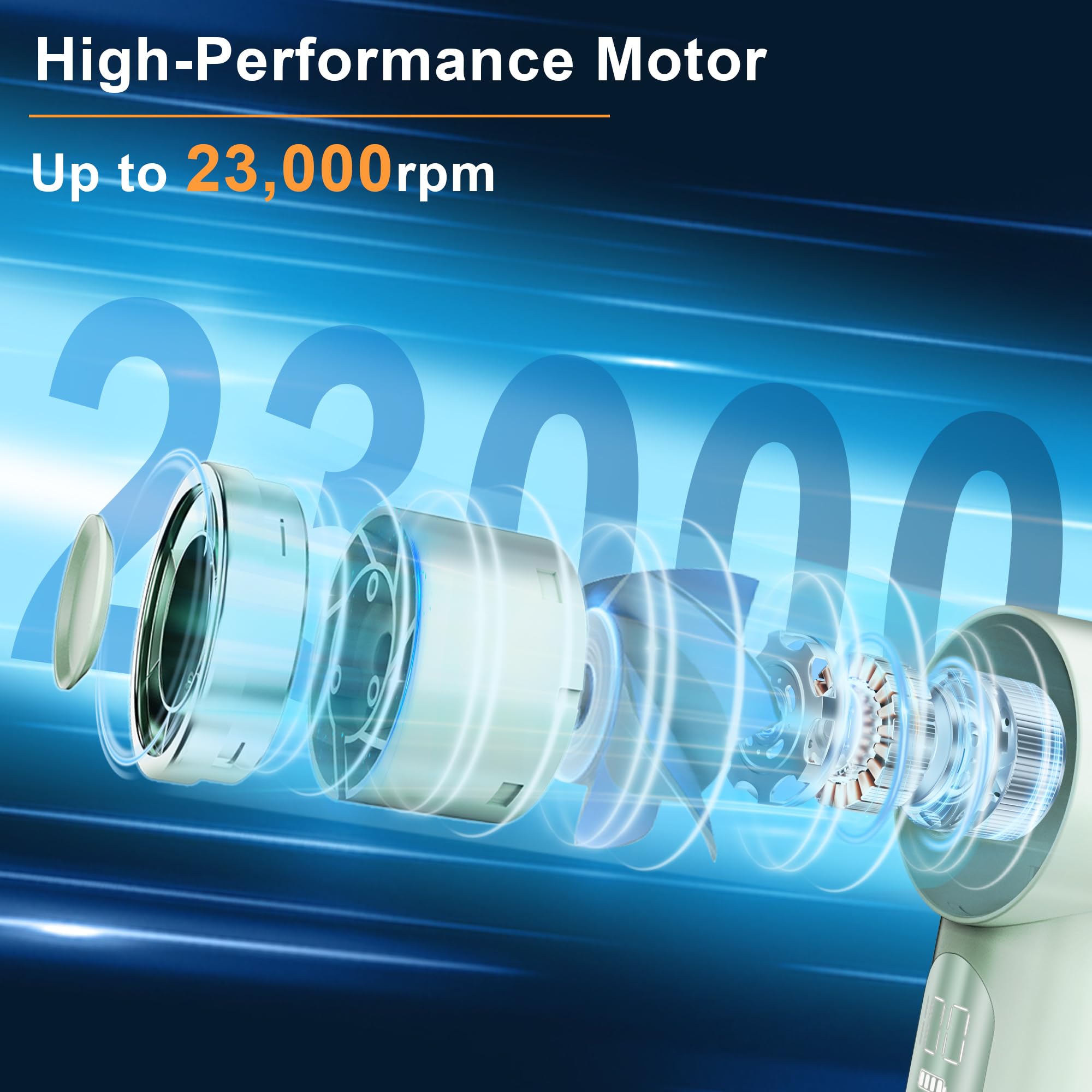 • Powerful airflow: Equipped with a 23,000 RPM motor and Air Compression tech, it delivers a strong breeze up to 44.28ft/s (13.5m/s).