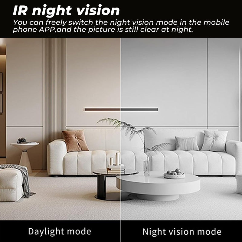 • Advanced infrared night vision: Enhanced with infrared night vision function, the wireless camera for home monitor delivers clear visibility even in low-light conditions. Ideal for round-the-clock monitoring, providing sharp imagery regardless of whether it's day or night.