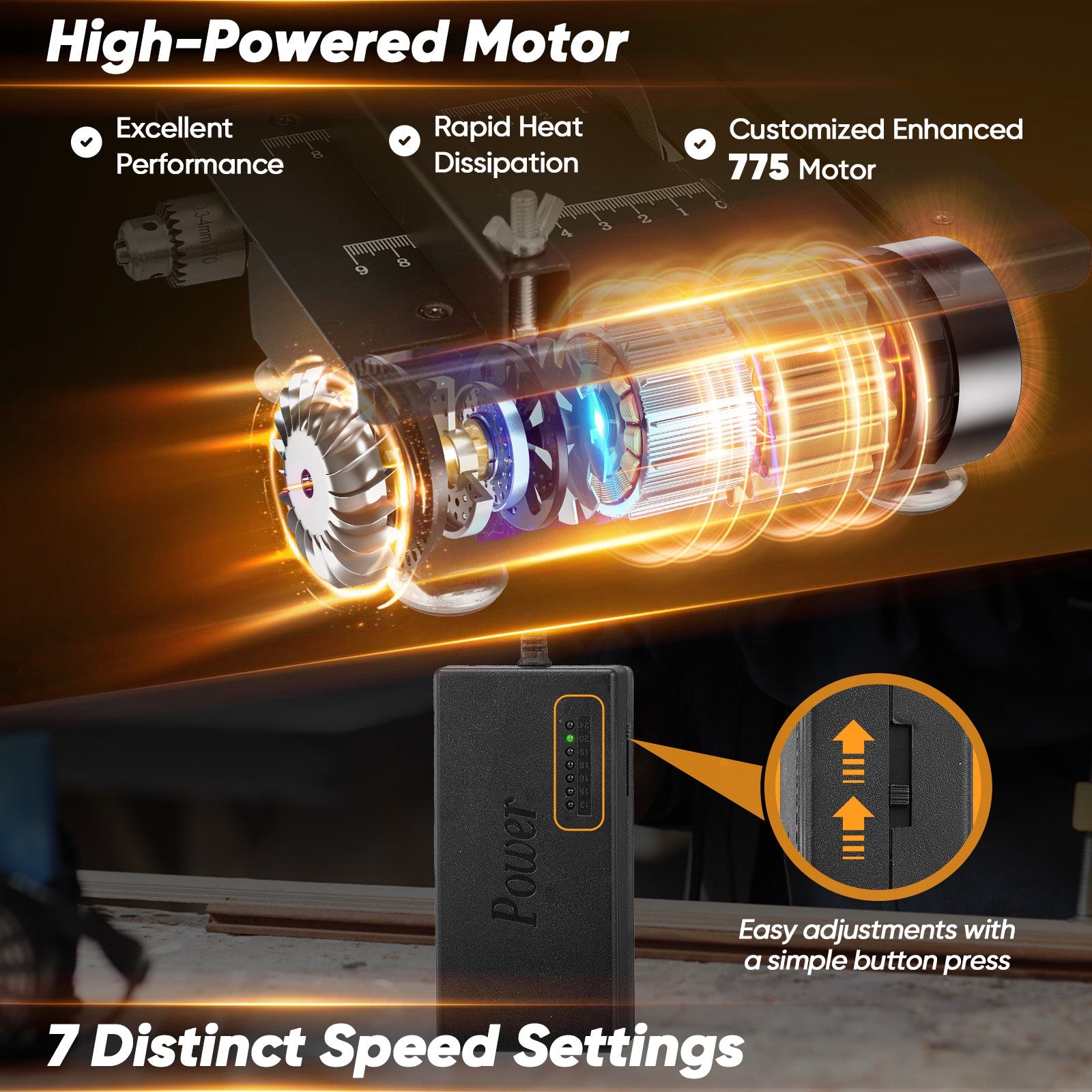 Powerful Motor and Adjustable Speed: Powered by a 100W pure copper motor, this electric desktop saw operates at speeds up to 6000 rpm. It features 7 adjustable speed settings, making precise, efficient, and fast-cutting operations easy to achieve.