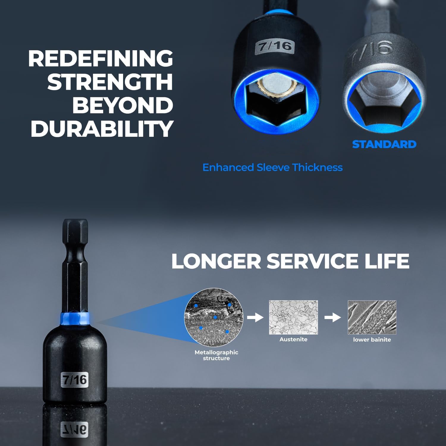 • Never lose a bolt/reinforced magnetic: Strengthened magnetic impact bit helps you easy pick up screws. the magnetism doesn’t decay after multiple uses.