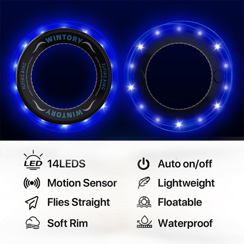 Glow-in-the-dark flying disc: Our LED glow flying disc features the latest LED technology with 14 built-in lights. When you throw it, the lights automatically turn on. Whether indoors or outdoors, day or night, you can enjoy playing with this unique LED fly disc alongside your friends and family, creating wonderful memories.