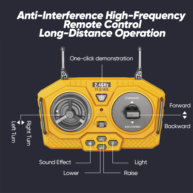 2.4Ghz easy to control: The remote excavator is transmitted by 2.4GHz which allows you to operate it from a distance of 130 feet. With strong anti-interference function, kids can play multiple excavators or cars with friends.