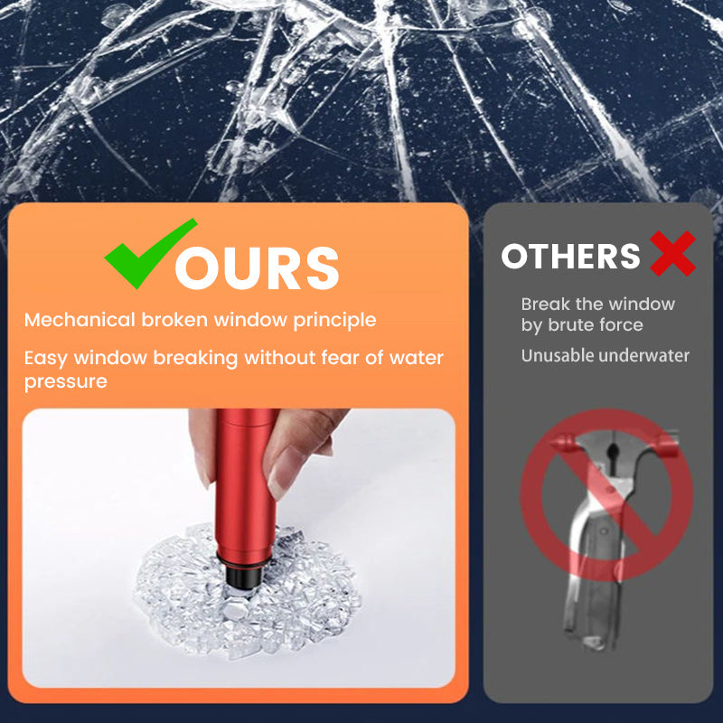 • Dual Functionality: This 2-in-1 Safety Hammer combines two essential functions. One side features an emergency window-breaking hammer for shattering vehicle windows during emergencies. The other side includes a seatbelt cutter blade for quickly cutting through seatbelts to rescue oneself and others.