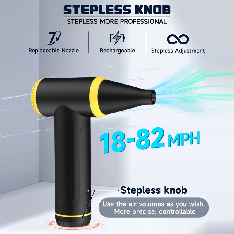 - Powerful Turbo Fan: The SAKER® Compressed Air Duster features a brushless DC high-speed motor, reaching a maximum output speed of 100,000 RPM. This creates airflow with a speed of up to 20 meters per second, ensuring efficient and quick dust removal.