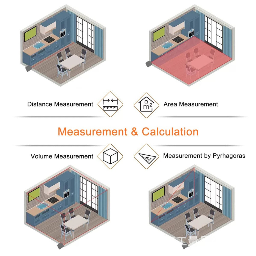 - Powerful and Rich Functions🥇 : You can switch between different units, such as meters/feet/inches, to meet your different habits; The 40m laser rangefinder is designed for long-distance measurement. The instrument has various measurement functions, including single/continuous measurement, area measurement, volume measurement and Pythagorean measurement.