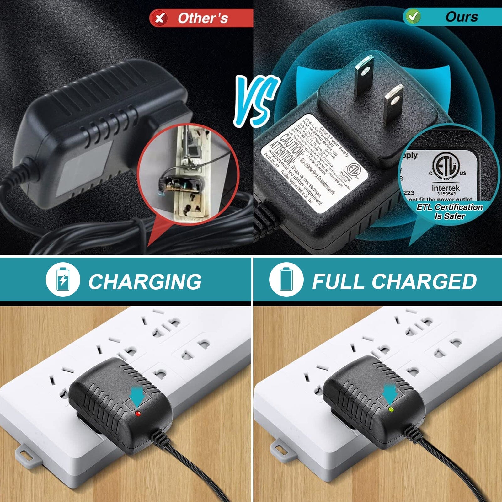 - Rechargeable Battery - Our chainsaw is equipped with a 20V 2000mAh cordless tool battery with its charger, which can be used for a long time. Its charging system turns off when the battery reaches full capacity.