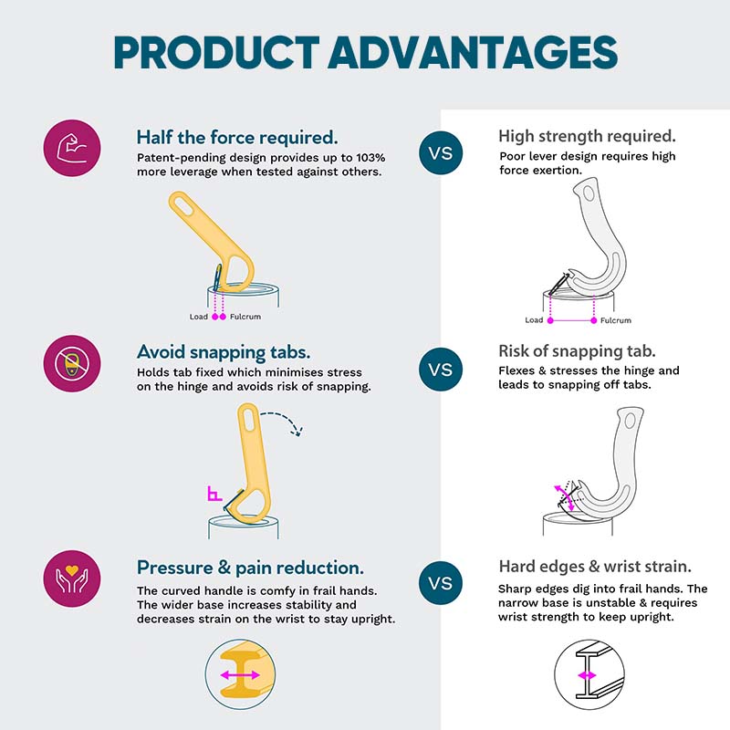 - Safe to Use: The unique design minimizes the risk of hand injuries during the can opening process, providing a safer user experience. The opened can edges are smooth and free of sharp parts.
