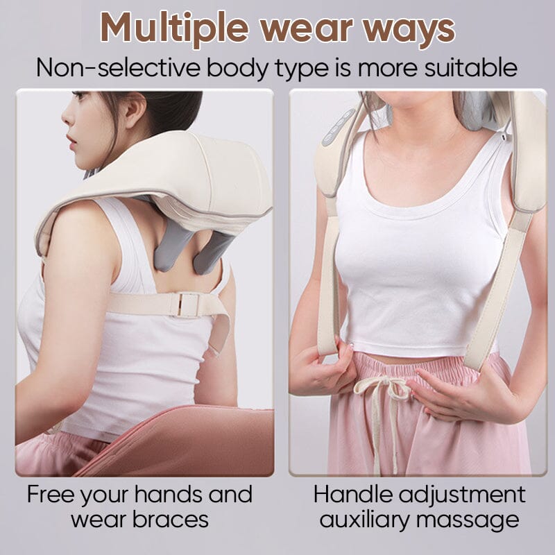 - Hands-Free Shoulder-Back Design: This breaks away from the traditional hand-held massager design, allowing users to continue their activities while enjoying a soothing massage thanks to the shoulder straps.