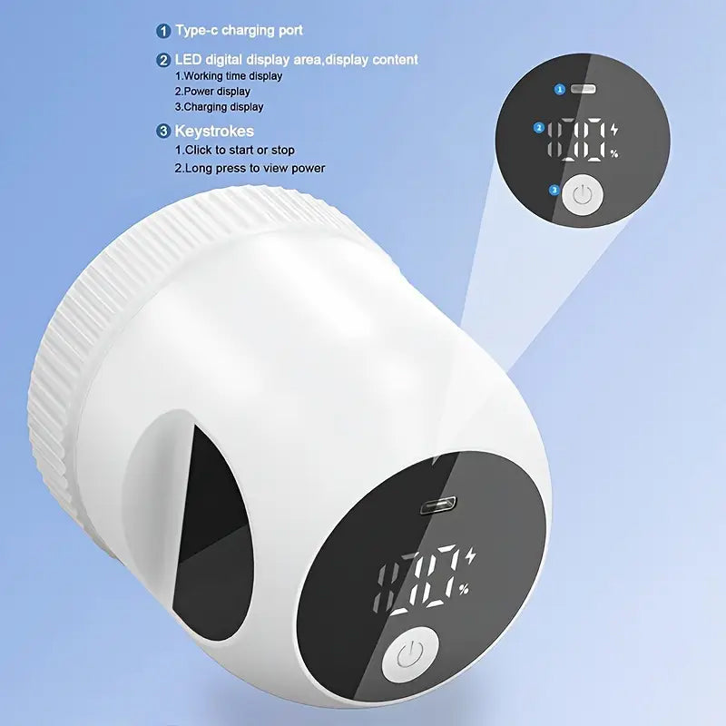 User-friendly design: features a type-c charging port and an led digital display showing working time, power level, and charging status for easy operation.