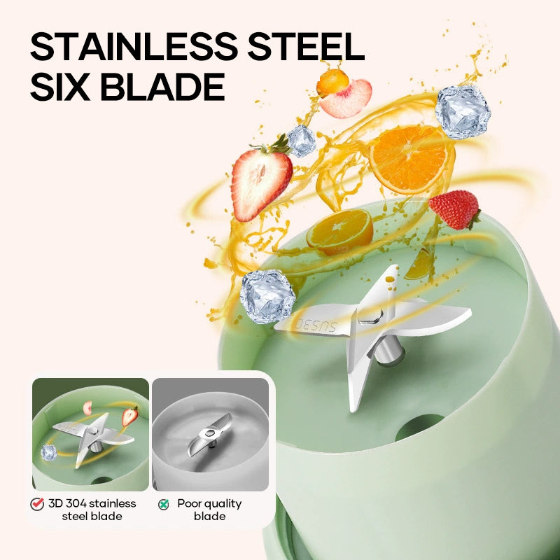 🍹 Powerful & efficient: The portable juicer blender is equipped with 6 PCS stainless steel blades, high speed DC motor, powerful, fast and delicate juicing, just 30 seconds to bring you a fresh smoothie, milkshake, freshly squeezed juice, etc., so that you can enjoy fresh juice easily.