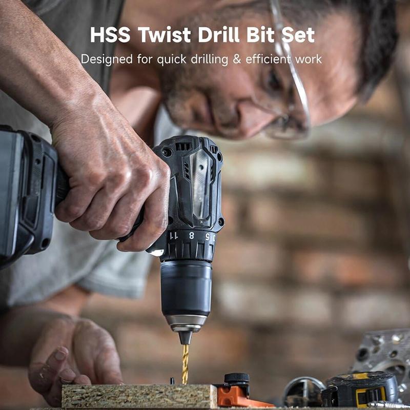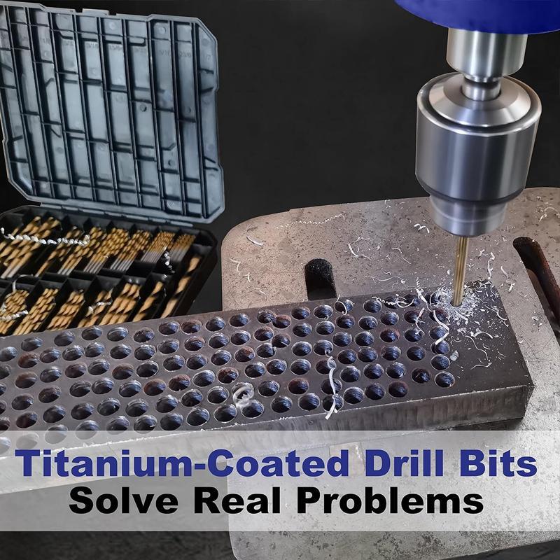 Made from 100% High-Speed Steel Construction with Titanium Coating for Proven Capability and Durability. Be equipped with every drill bit size you need in our handy and portable HSS metal drill bit kit. You will find long drill bits as well as small bits inside the metal storage box.