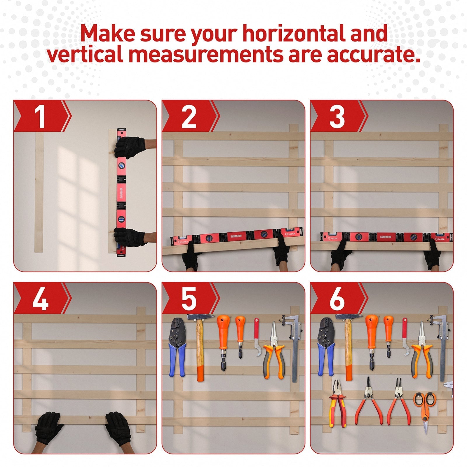 - MULTI-ANGLE MEASUREMENT: The Multi-Function Foldable Level features 4 extremely clear and intuitive blue acrylic vials, which obtain preciseness accuracy of 0.5mm/m providing a wonderful and joyful experience for measurement and calibration of indoor and outdoor jobs.