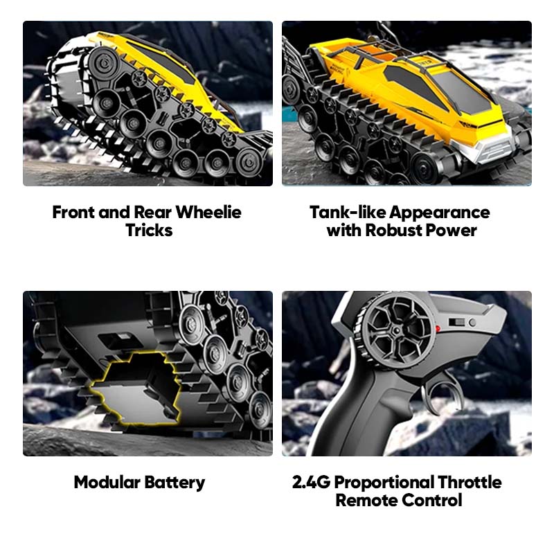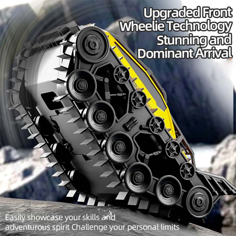 Advanced control and precision: Equipped with a 2.4Ghz remote control system, you can easily control the tank from up to 100 feet away. The full-proportional throttle provides precise and delicate control, giving you the ability to navigate, accelerate, and perform stunts with accuracy. The upgraded front wheelie technology allows for stunning wheelie tricks, making it an exciting toy for all ages.