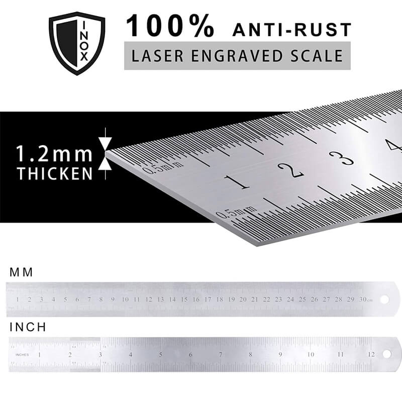 - Accurate Measuring Ruler:With two functions of inches and centimeters, this steel ruler can be converted into the required measurement unit immediately since there are measuring scales on both sides. The multi-gauge has a more accurate minimum measuring range than regular vernier calipers which can mark up to 1/20 (0.05)mm which is about 0.019 inches.