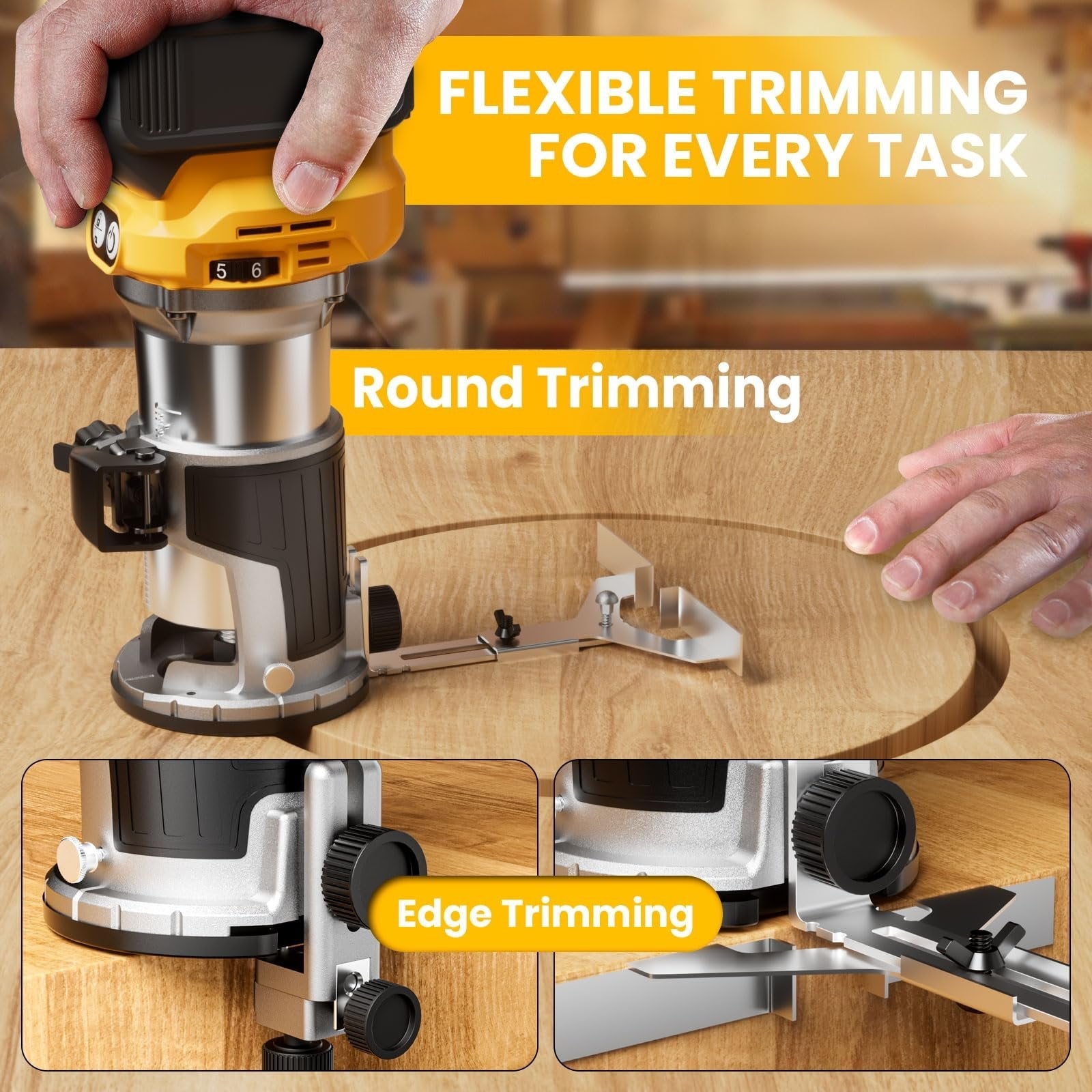• Expanded 6-piece accessory kit: Now includes 6 premium bits, edge guide, roller guide, aluminum guard, and dust port. Cordless compact router tackle edge trimming, carving, and dust-free routing with enhanced precision.
