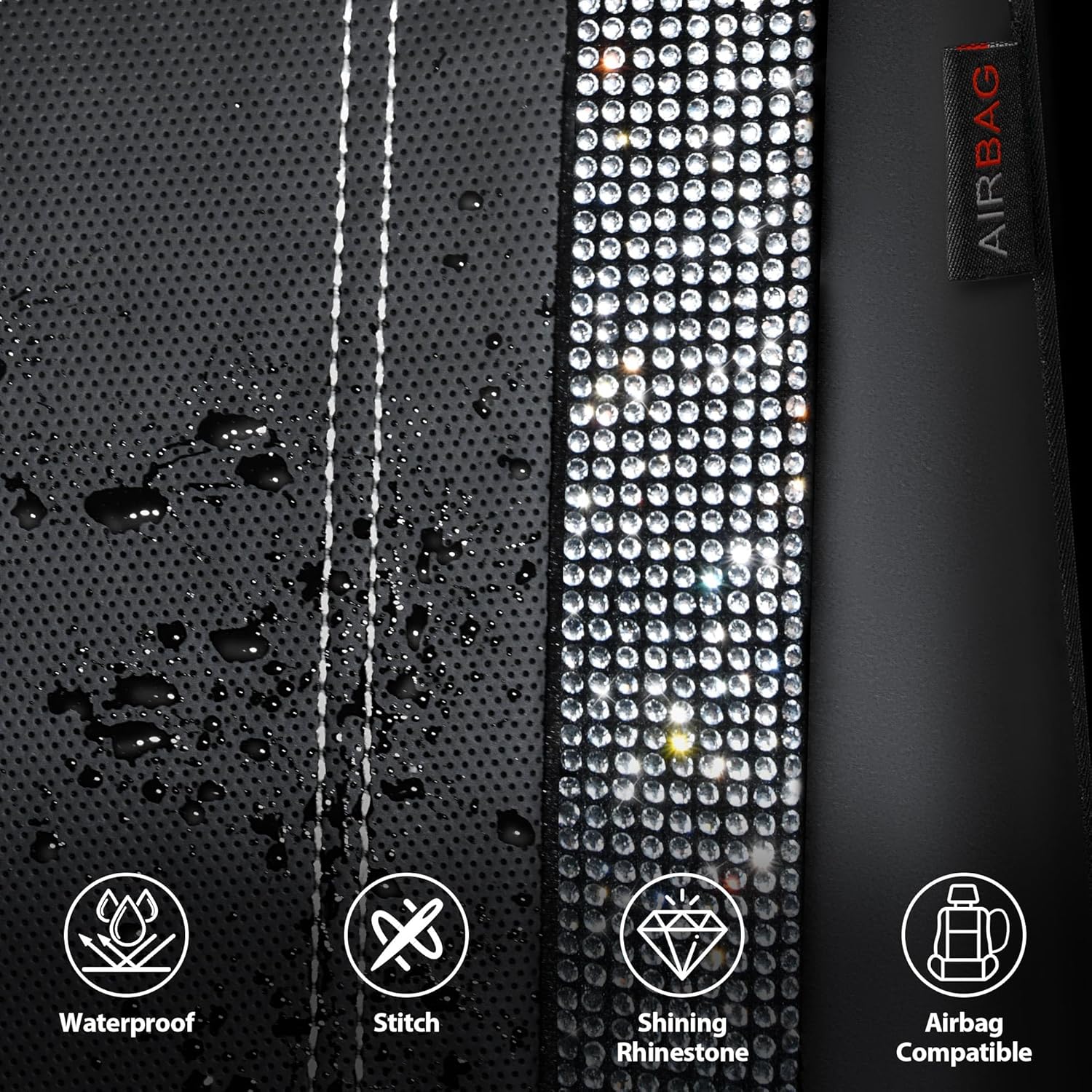 • Bling diamond car seat cover: Premium leather with pretty rhinestones made. Black leather with shiny rhinestones, perfect for women and girls. Perfectly matches your interior look and ensures your seat covers last for many years. Refresh your car’s interior with beautiful design and quality.