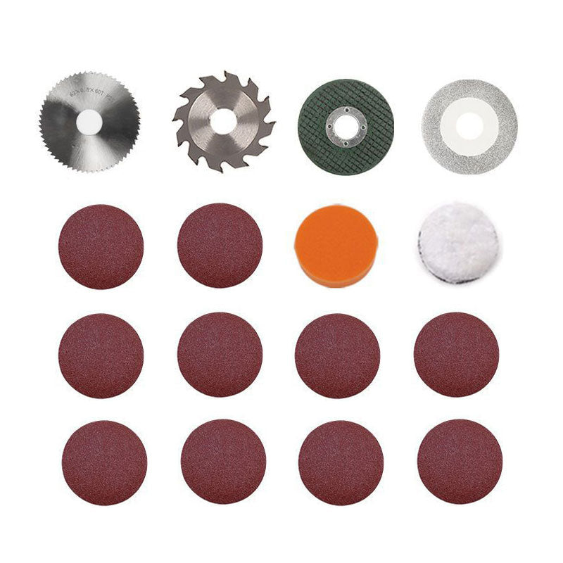Multifunctional Mini Table Saw: This mini table saw is specifically designed for cutting small items and is compatible with materials such as PCB boards, wooden sticks, plastic sheets, thin wooden boards, cans, copper-clad panels, aluminum tubes, and copper tubes. It comes with four different types of circular saw blades to meet various cutting needs: PCB cutting blades, high-speed steel saw blades, alloy saw blades, and resin saw blades. The saw blade size is 63 millimeters in diameter with a 16-millimeter inner hole.