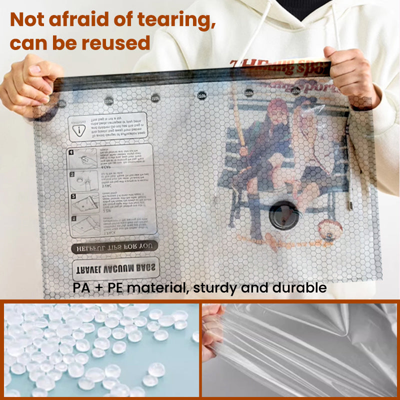 Easy to use: Works with any standard vacuum cleaner; put the items in, zip up and suck out the air, then close the cap and finish.