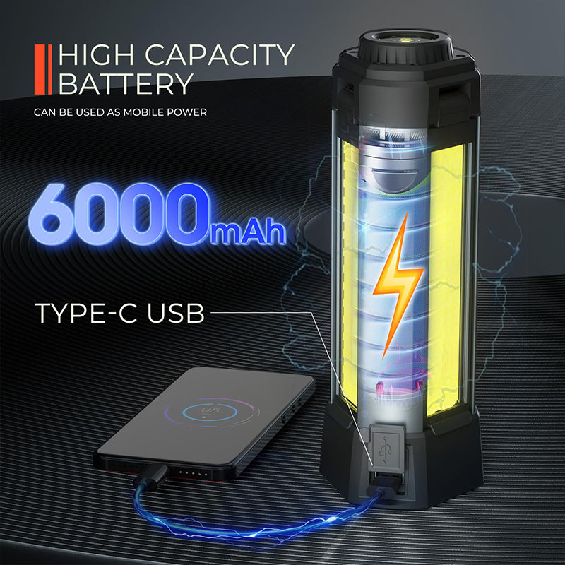 • 9000mAh High Capacity Battery: Get rid of the shackles of the cord! The LED work light is powered by a 9000mAh high capacity battery which supports longer working hours! It amazingly keep working 12 hours on low brightness, which is sufficient for multiple outdoor activities! Compared to the traditional corded light, our cordless work light provides you indoor flexibility and outdoor portability, satisfy your lighting needs for various working places.