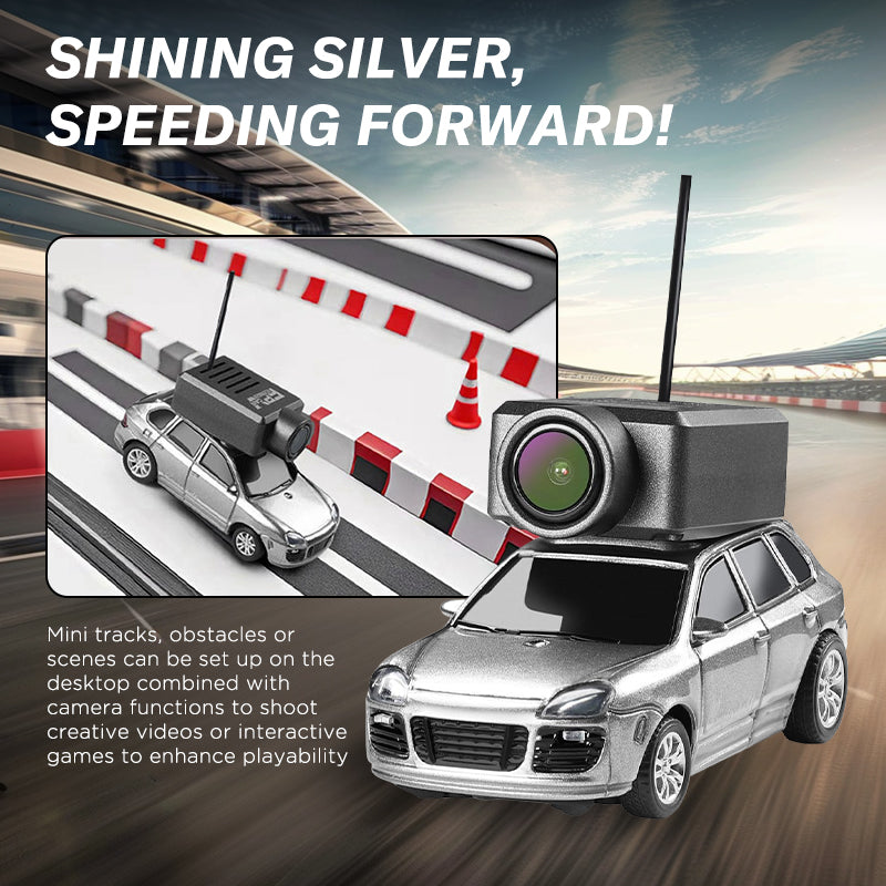 Speeding Forward: This car isn't just fast—it’s a silver streak of style and creativity. Set up mini tracks, obstacles, or custom scenes right on your desktop and use the built-in camera to capture creative videos or play interactive games. Whether you're racing or storytelling, the combination of FPV camera and imaginative setups takes the fun to a whole new level, greatly enhancing playability and engagement.