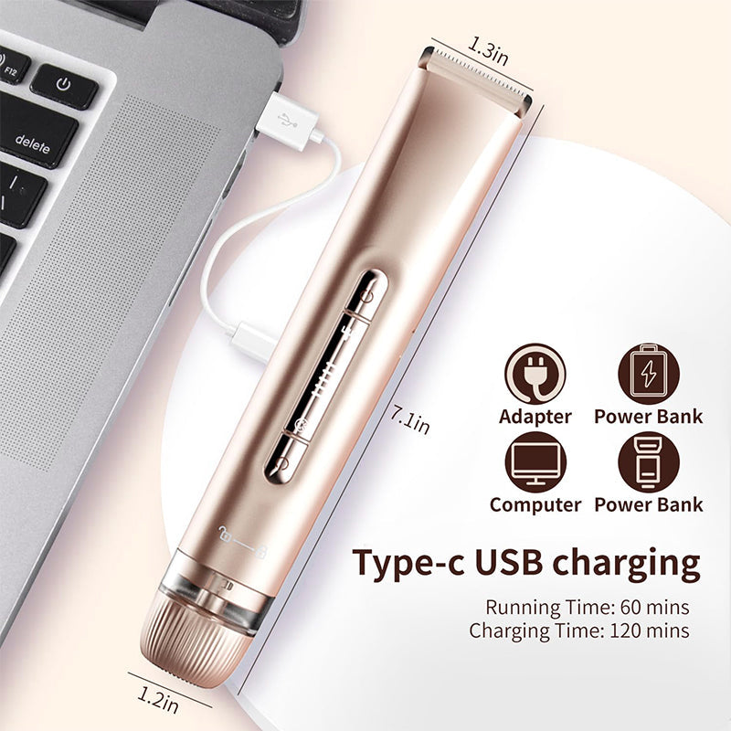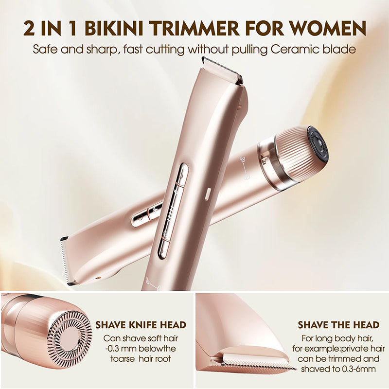 Hypoallergenic electric bikini shaver for sensitive skin: Designed with hypoallergenic stainless steel blades and a protective guard, this women's bikini trimmer glides painlessly over curves. Safe for delicate areas like the face and bikini zone—zero irritation guaranteed.
