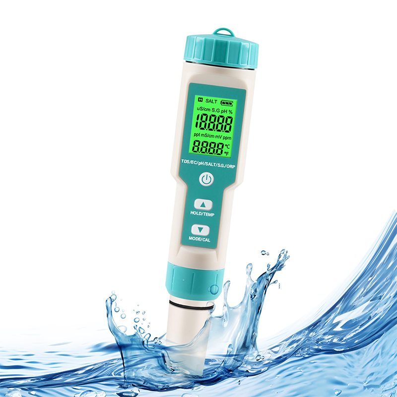 Wide usage 7 in 1 PH meter: The pH meter is designed with a 7-in-1 function, Simply press the {MODE/CAL} key,you can switch to measure TDS/EC/Salinity/Temp/ORP/S. G/PH.