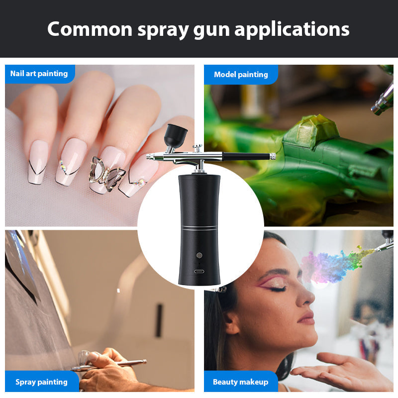 • Handy air brush gun: Use this cordless air compressor with any air brush paint for stunning airbrush makeup, nail art designs, decorative painting, and barber enhancement spray applications.