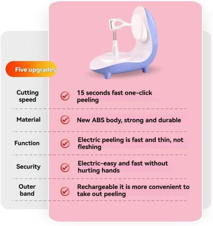 Electric & safe operation: Designed with safety in mind — enjoy easy, hands-free peeling without the risk of cutting yourself. The sharp blade works precisely while the sturdy base holds the fruit securely in place for stable and safe use.