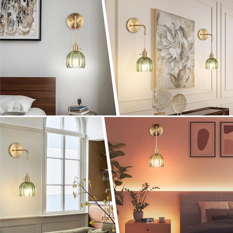 Decorative & durable: Vintage wall sconce using classic deep green glass material lampshade, carefully selected and treated to ensure it is without blemishes, has a clear texture, and can penetrate light very well. Presenting an elegant sheen and texture. Not only creates a nostalgic and retro atmosphere but also brings a touch of vitality and energy to the space. Suitable for use indoors wherever there is a need for light.