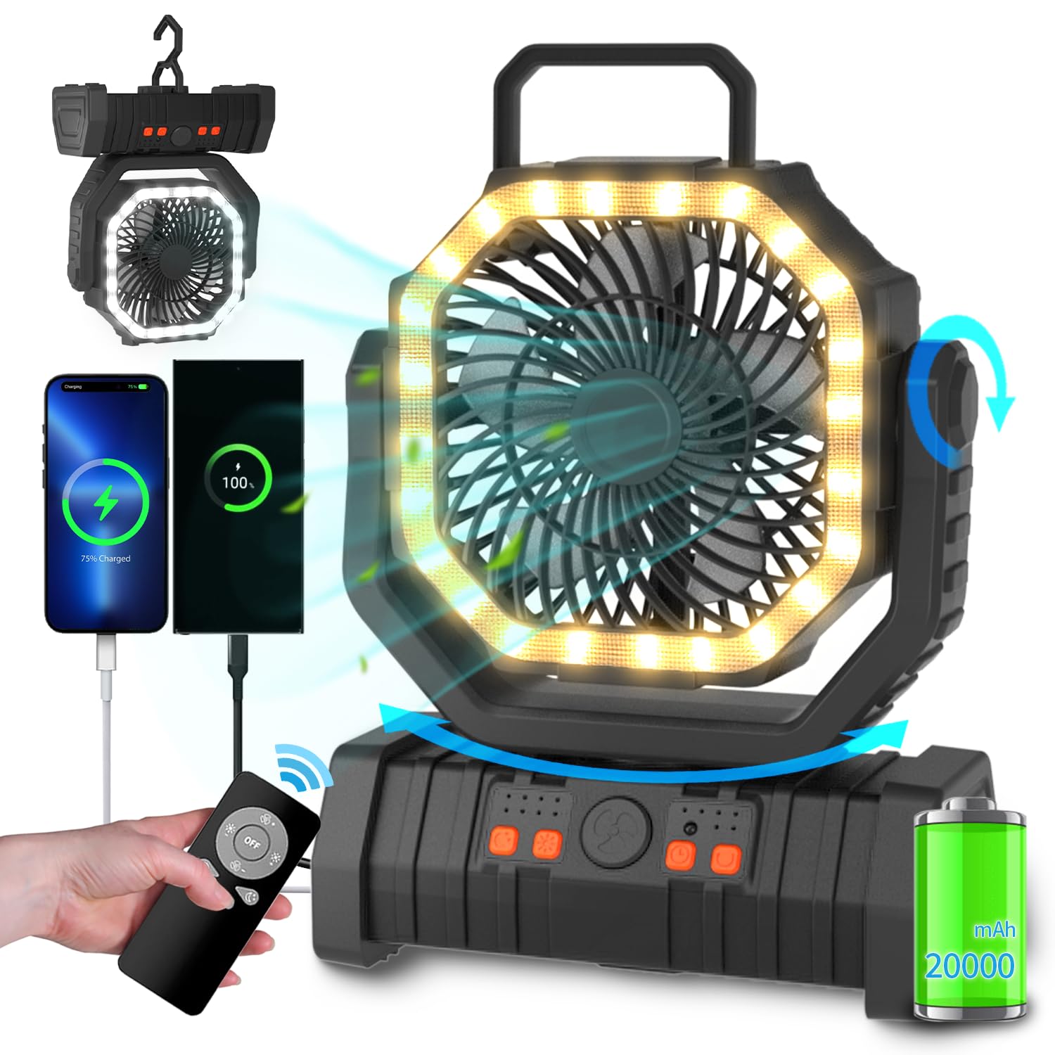 3 Level of light brightness & 3 color temperature: This camping tent fan with LED latern can illuminate your enviroment when it's dark. 3 color temperature, warm/cold/warm&cold, provide more options to meet your preference. Choose from low brightness to high brightness, a fully charged battery fan can be used for 138-78-39 hours.