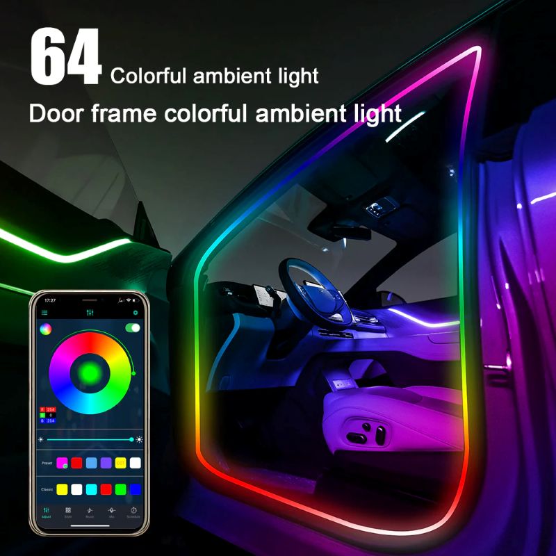 Interesting diy mode: With access to 64 colors through the app, you can create your own lighting effects and apply them to your car lights. According to the interior environment of your car, choose a good location to install the atmosphere light bar.